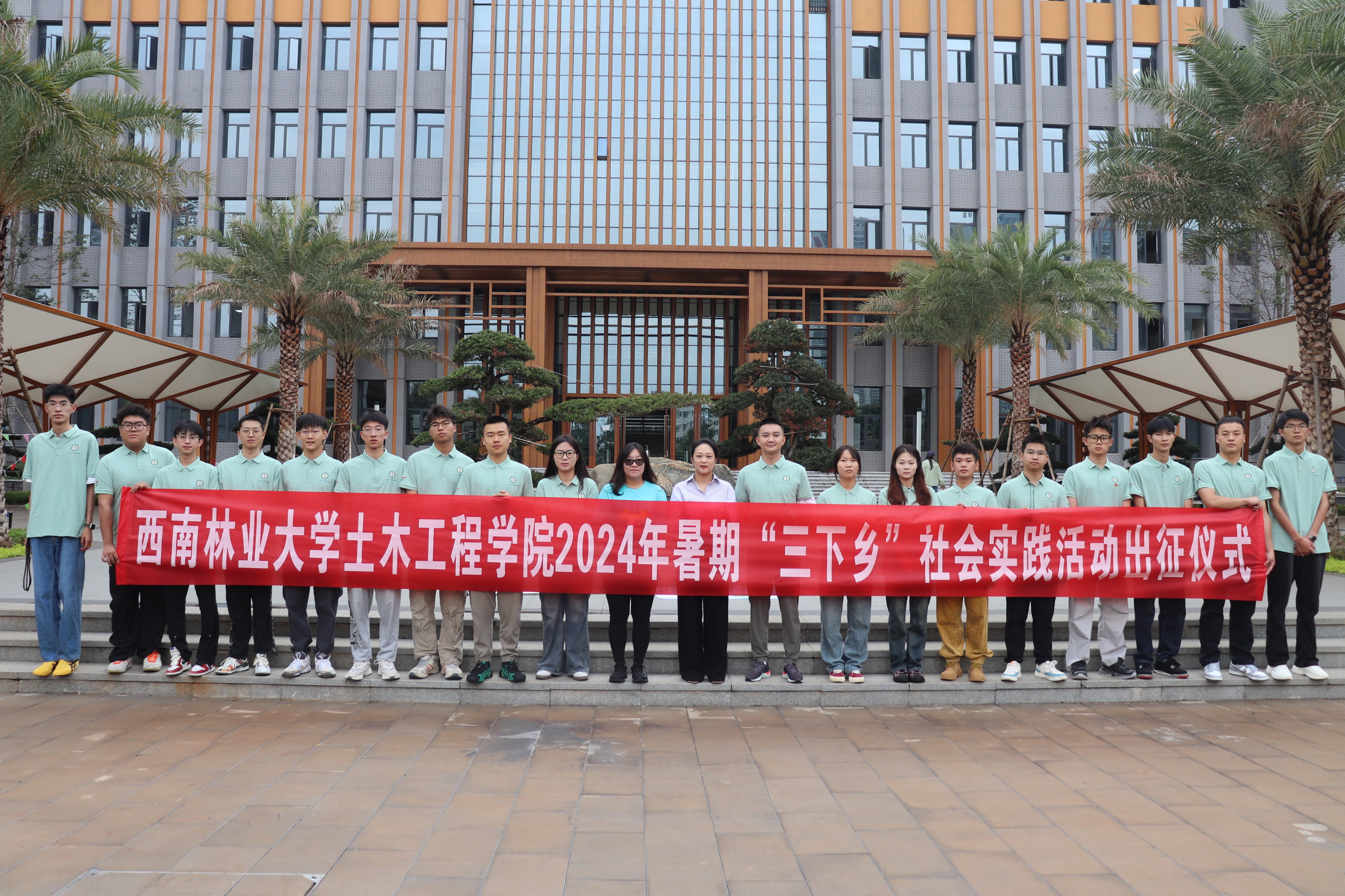 8月17日上午,bevictor伟德官网暑期“三下乡”社会实践队于智华楼前开展出征仪式,土木工程公司党委副书记何妮娇、团委书记刘鸣奇、本科生教学秘书谢婷婷以及三下乡团队成员共计20余人参加。