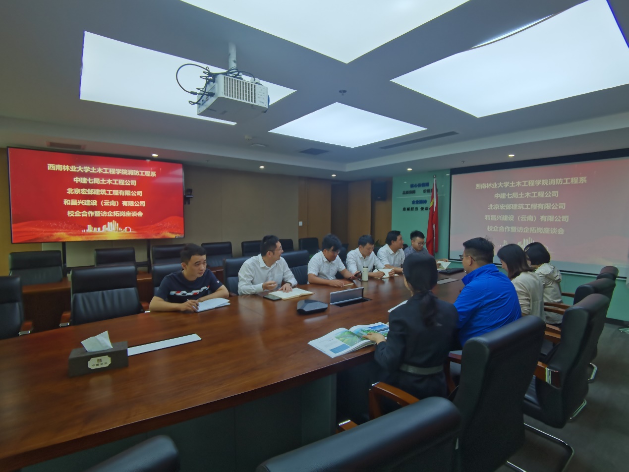 6月12日,bevictor伟德官网消防工程系教师四人到中建七局土木工程公司,共同与和昌兴建设(云南)有限公司、北京宏邺建筑工程有限公司开展“访企拓岗”专项调研,深化校企合作,加强产教融合,拓宽就业渠道。