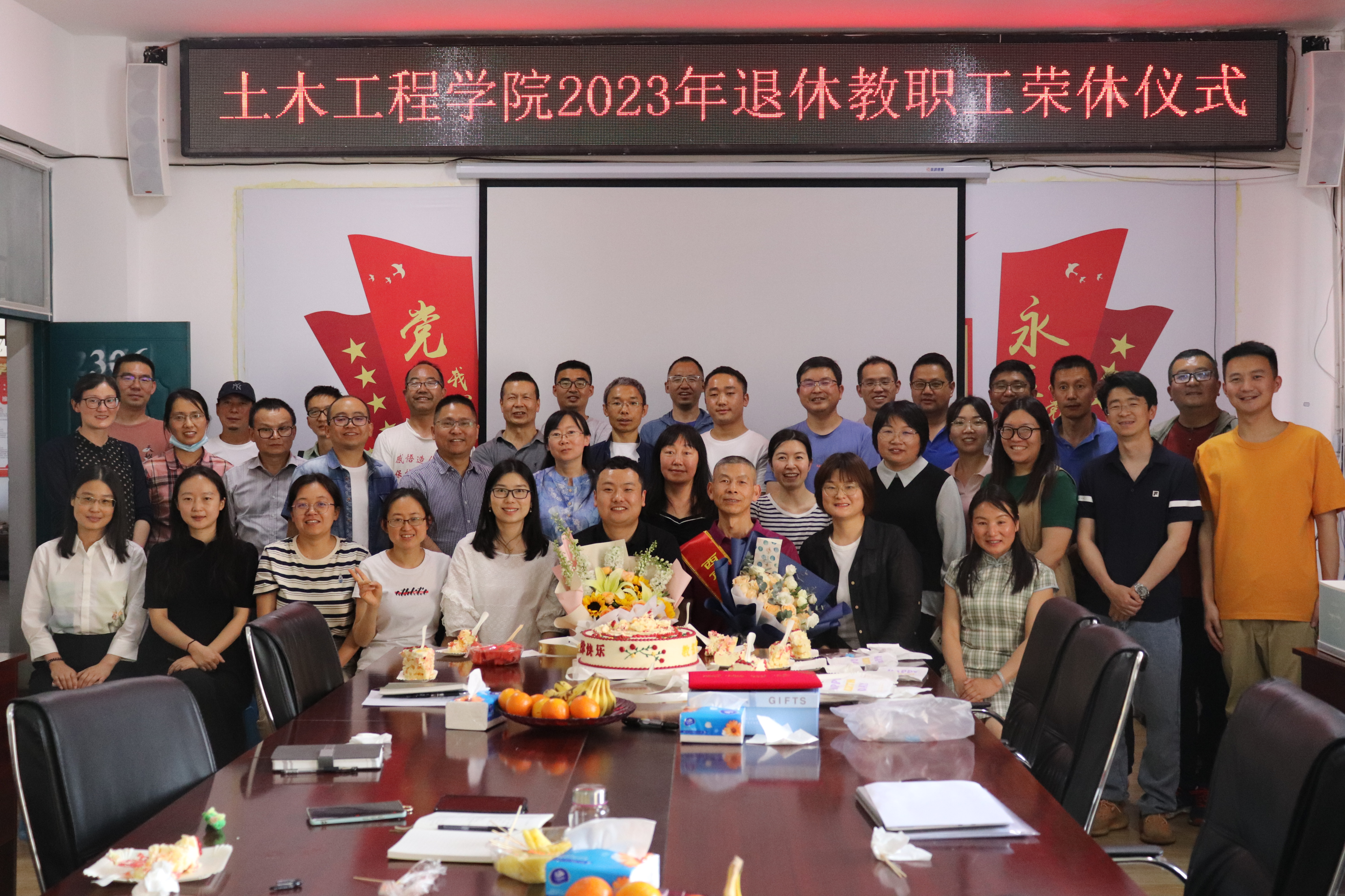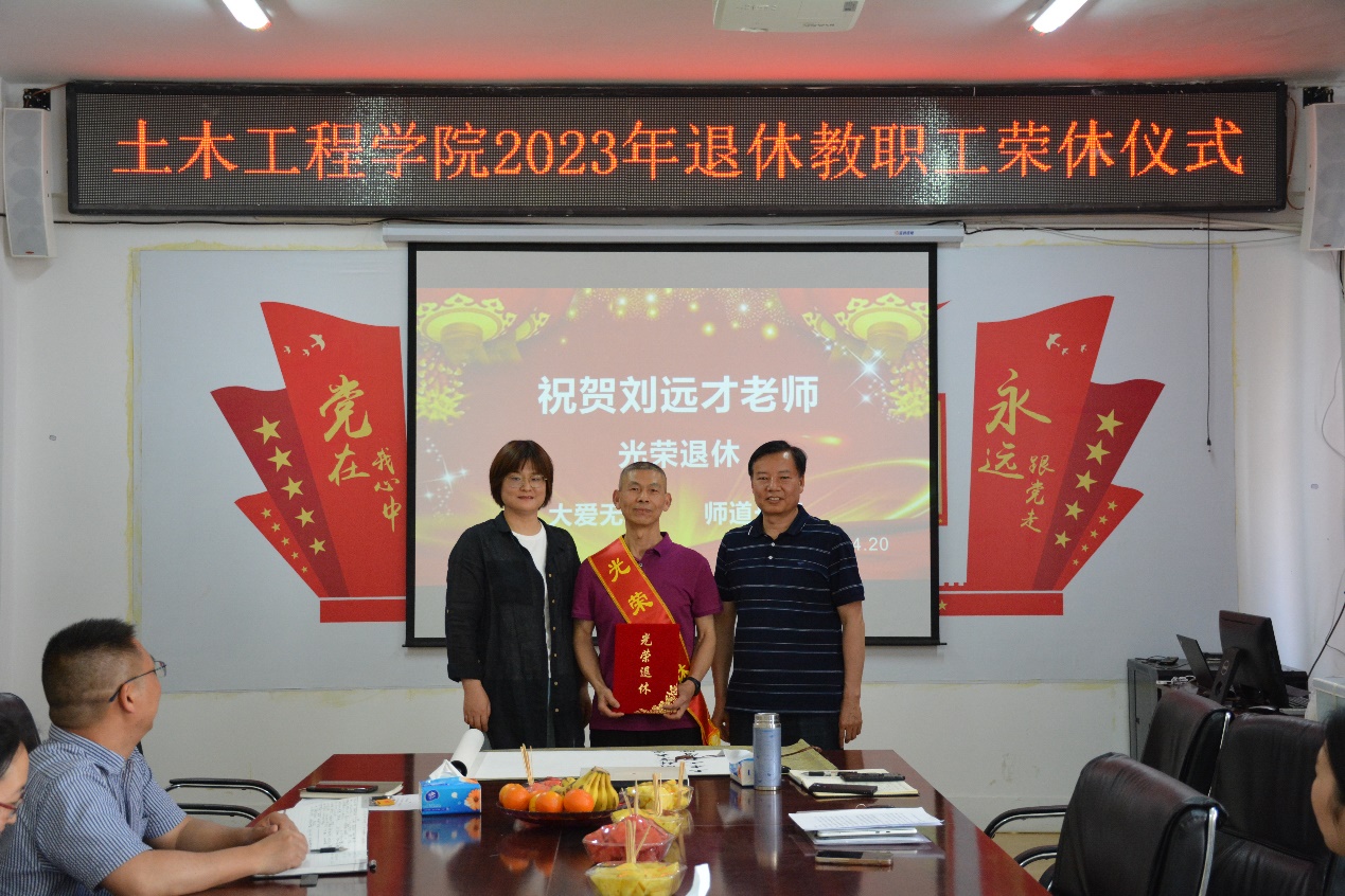 荣休仪式上,大家一起观看了员工的祝福视频,公司党委书记谭泽飞为刘老师披上绶带,经理孙微微为刘老师颁发荣休证书,刘老师在公司的功劳簿上留下了手印和签名。公司副经理王秋华为刘老师赠送纪念品,罗富丽、刘兴姚两位年轻的新老师和员工代表为刘老师献上美丽的鲜花,在场的老师们积极发言,以表达对刘老师的感谢和祝福。刘老师结合自己三十七年的工作经验和体会,分享了如何提升教学科研能力,希望青年教师认真对待每一次课堂,注重理论与实践相结合,不断总结经验,提升教学效果。希望老师们团结协作,共同努力,为公司发展和学科专业建设贡献更大的力量。刘老师的精彩分享,为大家上了很好的一课,拉开了公司教授讲坛的序幕。孙经理在最后的讲话中表达了对刘老师的感谢和祝福,表示将带领公司全体教师一起努力,使公司迈上新的台阶。最后,大家唱起生日祝福歌,和刘老师一起分享生日蛋糕,合影留念,气氛热烈而温馨。
