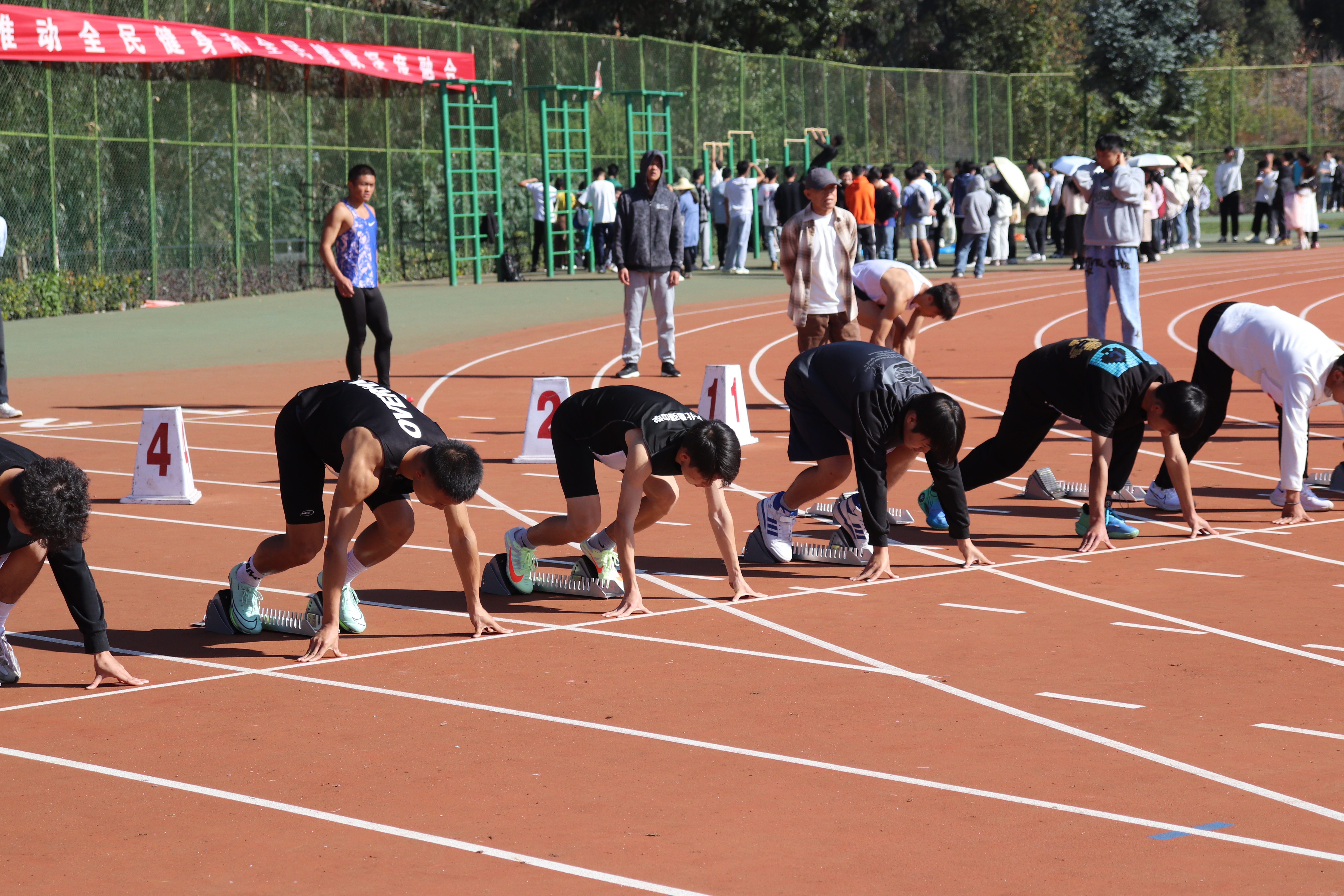 声声呐喊催奋进,青春绽放正当时。蓝天下、绿茵上,运动健儿们努力挥舞着双臂,拼命迈开自己的双腿。心中坚定的信念,脚下沉稳的步伐,他们用汗水与热血诠释着一个不变之理,“没有走不完的路,没有过不了的山,成功正在终点冲着你们高高地招手”。