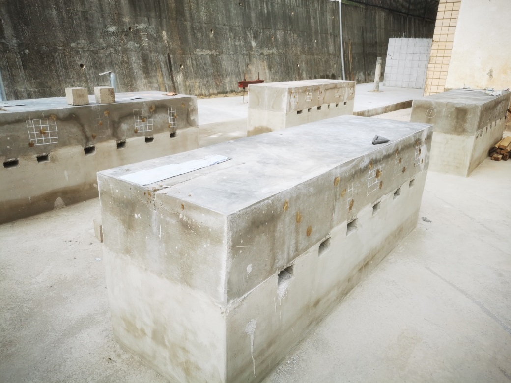 实训基地充分利用公司周边的闲置空地进行布置,通过从近年完成的数十项工程检测项目中总结提炼,本着“节约、实用”的原则设计实训项目。建成的实训基地包括室外、室内两部分,其中室外部分包括混凝土强度、钢筋、混凝土缺陷、基桩完整性、单桩静载试验、基桩高应变检测、隧道衬砌、钢立柱与锚杆、钢管混凝土脱空和预应力混凝土检测试件等;室内部分包括简支梁桥和连续箱梁桥有机玻璃模型,连续刚构桥、上承式拱桥、系杆拱桥、斜拉桥、悬索桥、钢-混组合梁桥、拉索索力测试和钢结构焊缝检测模型等。