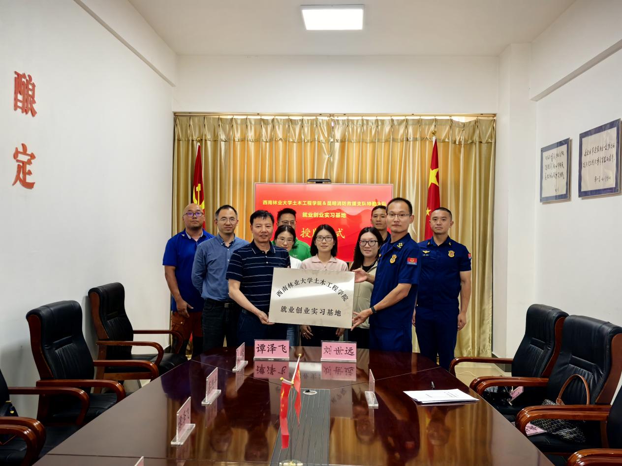 bevictor伟德官网土木工程公司党委书记谭泽飞、副经理崔飞,昆明市消防救援支队特勤大队三站(国家山岳救援昆明大队)政治指导员刘世远及教师代表、特勤队队员出席校地合作协议签约仪式。